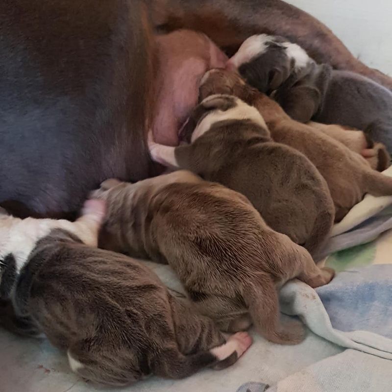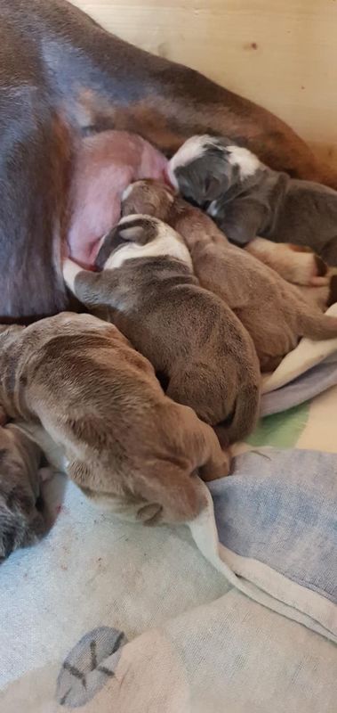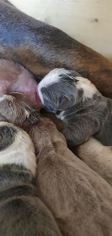 Nach einigen schlaflosen Nächten, haben wir am 09.05.2019 eine problemlose und natürliche Geburt von Las Vegas und Quentin ihren Welpen erlebt. Sie hat es diesmal echt spannend gemacht, nach 3 Tagen ohne Temperatur runter oder hoch ging es auf einmal ganz flott.